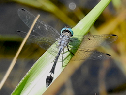 I spotted two types of dragonflies and one damselfly in the vegetation, and was able to photograph all three. I thought at first that identifying them would be easier than the lepidoptera; the odonata of the country appear to be much better studied than the lepidoptera, thanks to the efforts of Dennis Paulson, author of the well-known and much-consulted North American field guide “Dragonflies and Damselflies of the East“. I had no problems finding an online checklist of the Odonata of Costa Rica1 that he co-authored, his online library of neotropical specimens captured from Mexico through South America, or this slideshow for the Canopy Tower Family in Panama, which includes a checklist of the Panama odonata and 222 photos of 171 species. Although not specific to Costa Rica, this slideshow is worth viewing because of the large number of photographs of species found in both countries, and the valuable background it gives on some of the families that are unfamiliar to those of us who live in the Great White North, such as the threadtails and twigtails. What I did have trouble finding was a guide on how to distinguish one dragonfly species from another, or one that pointed out a species’ distinctive field marks.
