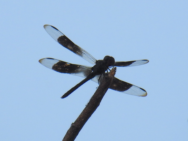 The last dragonfly was brilliantly red and held its wings straight out like a Widow Skimmer rather than down like a like a Blue Dasher. It is the only one that was not identified by Dennis Paulson, but as none of the other identifications suggested by iNaturalist quite matched the colours of this one, I was pretty sure it was indeed a Brilliant Redskimmer (got to love those tropical dragonfly names!).