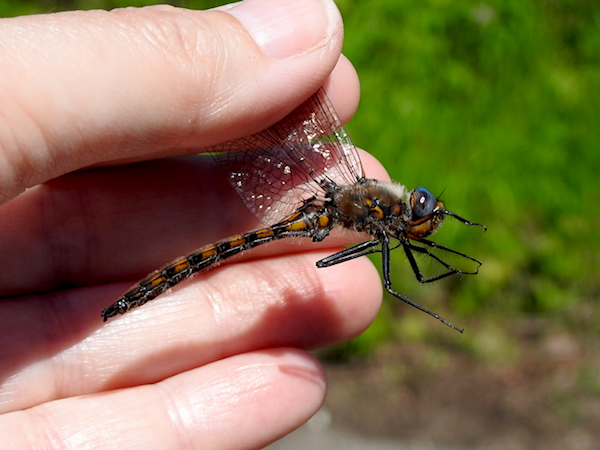 Then I found a male whiteface whose yellow spots were in the process of turning red, resulting in a dull orange colour. Seeing a transitioning dragonfly is always neat as they can show some unique colours not always found in books or field guides – such as the male Eastern Pondhawk that is half green and half blue. This fellow had the pale veins in the black basal triangles as well, though they weren’t as pronounced as those of the female I had seen earlier.