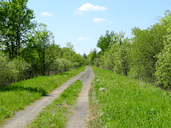 It was a longer walk than I anticipated, with not much variation in scenery. Fortunately the songs of the birds in the thickets and the insects buzzing or fluttering their way by kept us entertained as we strolled along.