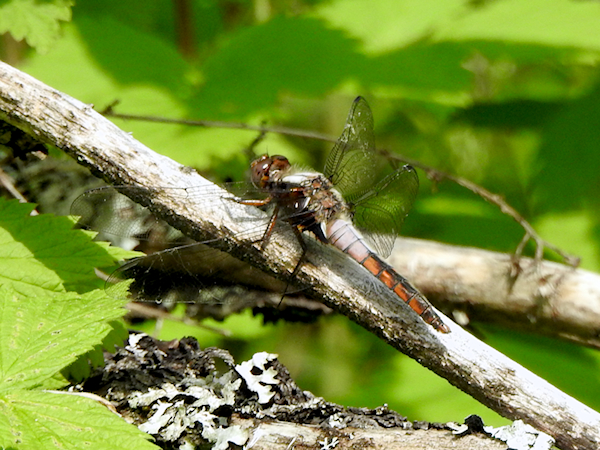 There were also at least two Chalk-fronted Corporals lurking on the ground along the corridors atop the escarpment – I saw this one when it flew up to a branch. It has the pinkish-brown body of an immature, though the pruinosity has already started developing on top of the thorax and the base of the abdomen.