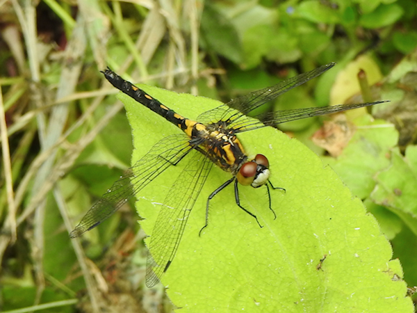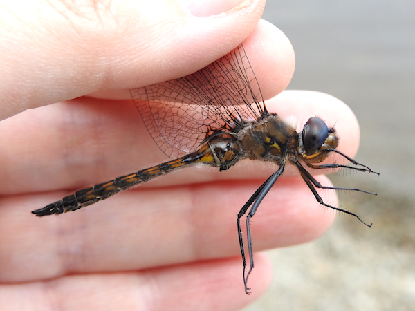 Another immature black and yellow whiteface had the claspers of a male and lacked any yellow spots along the abdomen. This pointed to either Belted Whiteface or Crimson-ringed Whiteface, which breeds – or used to – just west of Sheila McKee Park at the sandy pond at the Bill Mason Center.