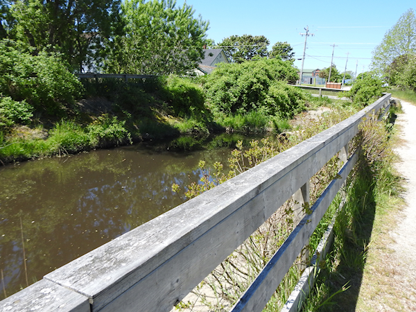 When I reached the lookout I discovered it wasn’t much – just a short trail through the vegetation with a nice view of the Forchu River curving from the north. There was no wooden boardwalk or elevated platform, which would have made it the place perfect. The sun was shining on the river, and I saw an emerald patrolling the reeds at the edge of the water. I heard a Ring-necked Pheasant calling from across the river, and it sounded close.