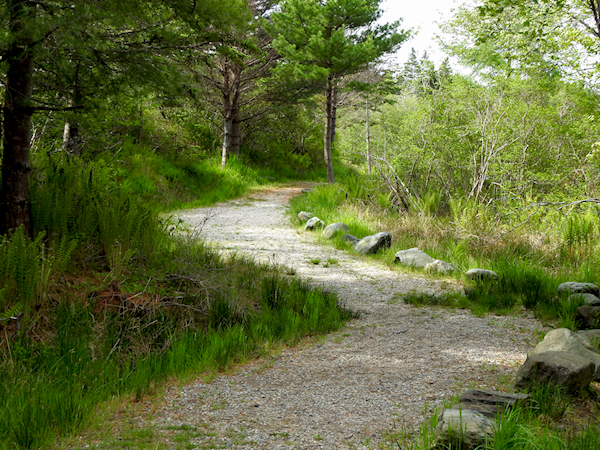 My real explorations began the following day with a visit to the Hebron Recreation Complex just north of town. I found it via my eBird searches; it is a hotspot with a total of 83 species. Although it is primarily a place for humans to play – there are softball diamonds, tennis courts, picnic tables, and at least one playground outside of the main building which functions as a community hall – the 2-kilometer Forchu River Trail loops around the perimeter of the complex, passing through mixed forest, over boardwalks, and alongside the river on one side and a cemetery at the back. I thought it would be a good place to find both birds and odes with the river nearby, as I was particularly looking for odes that inhabited streams and creeks.