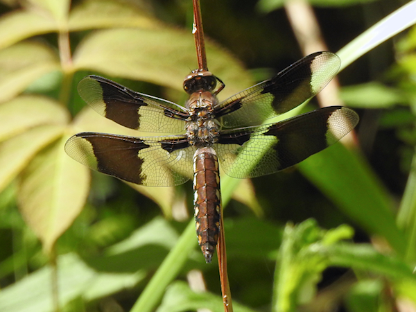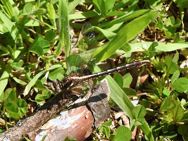 A small track meandered off to the side from where the main trail angled back toward the recreation complex, and the sunlight splashing on the vegetation in a clearing up ahead enticed me to take a closer look. The detour was worth it, as here I found my first dragonflies: a Lancet Clubtail and an immature male Common Whitetail!