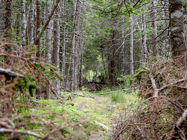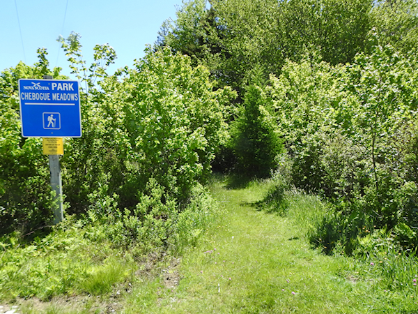 On my second day in Yarmouth I headed out to the Chebogue Meadows Wilderness Trail not far from the Hebron Recreation Complex. I had wanted to drive down to the Cape Forchu lighthouse to look for seabirds, but the chilly north wind was uncomfortable and I figured it would only be worse by the ocean so I decided to head inland instead. Chebogue Meadows sounded like a great spot to look for birds and bugs; it was an eBird hotspot, with a whopping 33 species listed before my visit, including many northern-type warblers and thrushes. Interesting to me was the river at the back of the loop visible on Google maps, but what made it especially appealing was an online description of a trail that takes you through 12 distinct habitats via footpaths and boardwalks including softwood forest, a black spruce swamp, a meadow, a hardwood upland, and wetlands.