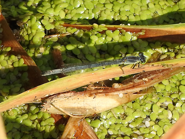 There were no dragonflies at the marshy pond, but I did see several damselflies. I only identified two species – Eastern Forktail and Northern Spreadwing, both of which were perching in the vegetation above the water.