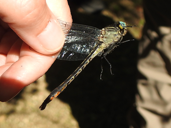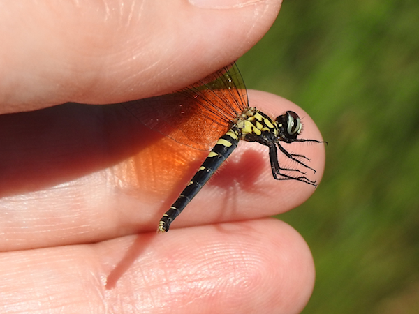 We approached the creek, and as we passed through a sunny, open area along the trail I spotted a clubtail resting on a leaf. It was one of the pond clubtails, and although my first instinct was to photograph it, I caught it so I could show the group. It turned out to be a Lilypad Clubtail, one of the few I have found away from the water instead of resting on a lilypad in a pond!