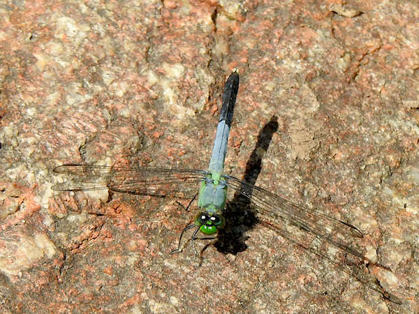 Our next spot was the bridge on Black Ance Point Road where we had seen the Dragonhunter last year. Unfortunately we didn’t see any clubtails, but there were plenty of Ebony Jewelwings, a few teneral whitefaces, Chalk-fronted Corporals – including one sharing a rock with a Common Whitetail, and something brown flying over the calm water below the bridge. I suspected it was a Stream Cruiser but it was too distant to make out any details.