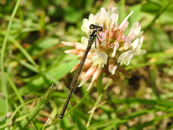 She was tiny, but I swept her up in my net without hesitation so I could show the group just how tiny she is. Astonishingly, her body is shorter than the shortest damselflies (sprites and forktails) in our area, as evidenced by the one I saw next to an Eastern Forktail.