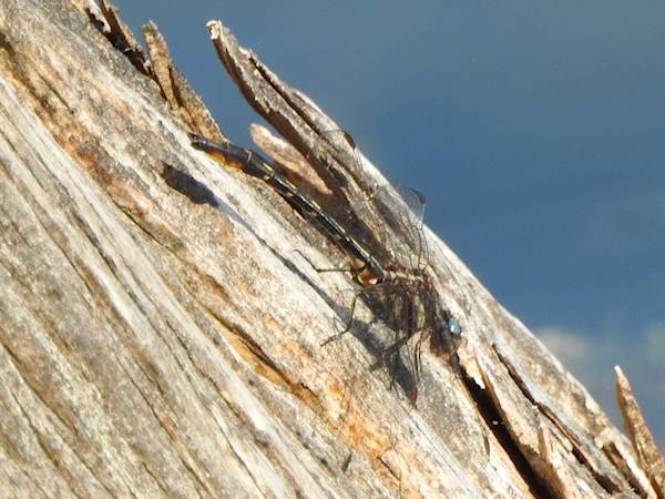 I didn’t see any mature Violet Dancers, but to my surprise a clubtail landed on a stump sticking out of the water near a Chalk-fronted Corporal. It appeared to be a Phanogomphus species, possibly a Dusky Clubtail. It was facing the water so I couldn’t approach it from the front, nor was it close enough to the shore for me to catch.