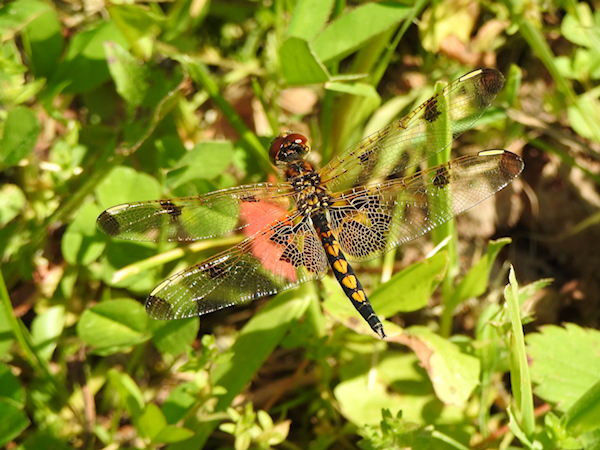 When we reached the open corridors we started seeing emeralds flying through the air: Racket-tailed Emeralds about 5 to 10 feet above the ground, and baskettails much, much higher up. I saw Common and Prince Baskettails as well as some that were likely Spiny Baskettails. We scanned the edges of the corridors and the large meadow but saw no Blue Dashers or whitefaces – just a Twelve-spotted Skimmer and several pennants. I thought they might be the Halloween Pennants I’d seen here last year and was surprised when they turned out to be Calico Pennants, a species I did not have here last year.
