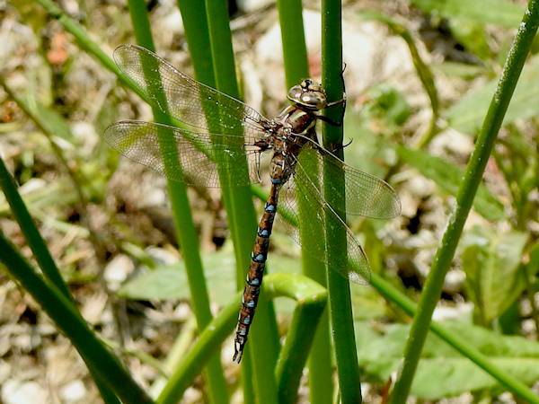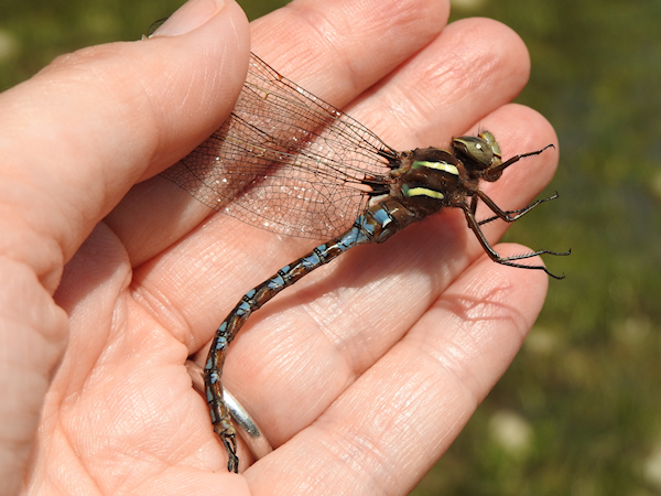 Like most darners, Springtime Darners feed while flying and only rarely perch. In the past I’ve been lucky to see a few land close to me – including the one at Morris Island a few years ago and the one at the Yarmouth rail trail last year – but these ones were not interested in landing at all. I placed the one I had caught on some vegetation but was only able to take one photo before it flew off.