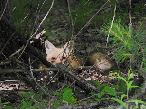 By the time we left the sun was finally breaking through the cloud, and it was finally feeling warm, though humid. A fox ran out onto the road in front of us before hunkering down in the woods, probably to escape the heat.