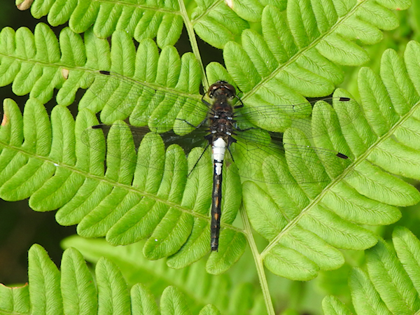 When we got out of the car the first thing I saw were several sets of black wings resting in the grass, all of which belonged to about half a dozen Widow Skimmers. As we progressed we saw several Racket-tailed Emeralds flying up and down the trail, a couple of Eastern Pondhawks on the ground, and a Frosted Whiteface on a fern looking particularly fresh.