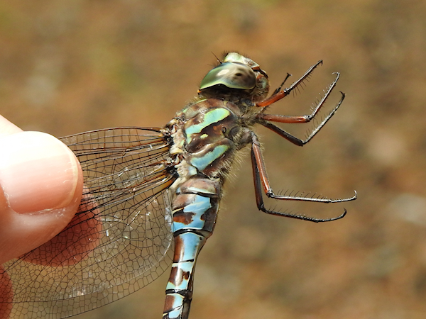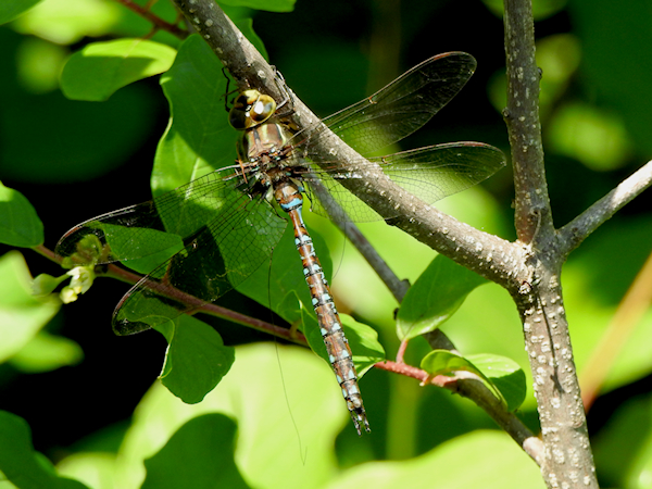 Chris led the way back up to the trail where he noticed a small darner land in a shrub along the slope. It was a Springtime Darner, our third darner species of the day.