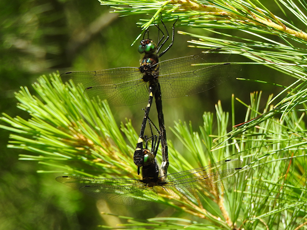 We didn’t think we’d see much on the walk back to our car, so we walked at a faster pace….we couldn’t have been more wrong. There were several Prince Baskettails flying overhead, and I’m not sure who noticed the first one land in a pine tree, but once we stopped to look at it we quickly found more in the same tree, and Chris noticed even more in the neighbouring tree! Altogether we counted at least 20 in the two trees and flying overhead! They must have emerged fairly recently given how shiny their wings were, and given that none of the ones I photographed showed the green eyes of a mature adult.