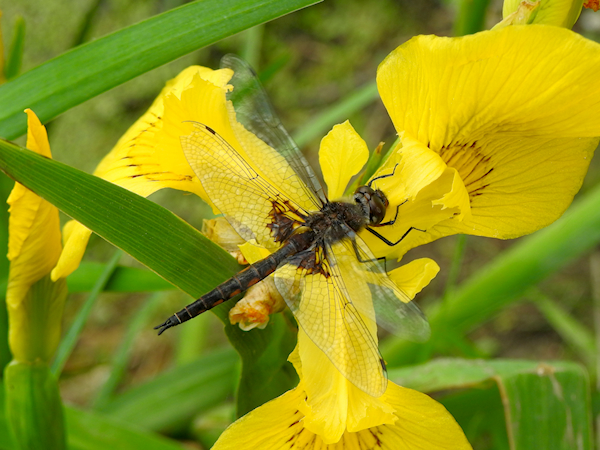 There were some lovely – but invasive – Yellow Irises growing nearby, and I placed the baskettail on the flower when I was done. Native to Eurasia and northern Africa, the Yellow Iris is a perennial aquatic plant that was brought to North America to decorate ponds and water gardens in the 1800s. The plant easily reproduces via seeds and underground rhizomes, and has since spread to many wetlands in southern Ontario, including in treed and open wetlands, along the shores of lakes and rivers, and in flood plains. The rhizomes form very thick mats which make it difficult for native plants to grow, often changing wetlands to drier habitats which affect the native wildlife. It should be removed where found, though care must be taken when handling the plant as all parts of it can cause skin irritation.