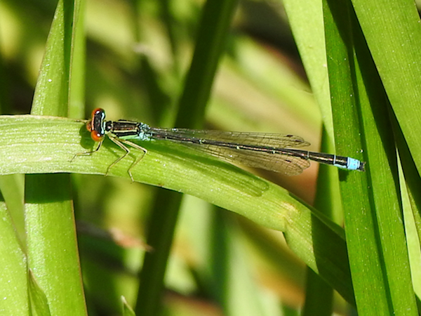 Despite their early arrival, they didn’t see any Rainbow Bluet until 11:00am, once the day warmed up. Then they found some in the two openings I directed him to, as well as in the grass at the south end of the park. He was happy he didn’t have to descend the slope to the water level because he found it awkward to stand there in the mud at an angle. He said his views of this beautiful, unmistakable bluet from the top of the bank were perfect, and that they were thrilled to see it! He ended his note by saying that the trip to see that beautiful species was really worth it (despite the numerous mosquitoes… finding those is never a problem!). It is always nice to hear from my readers, but even nicer when they successfully find a tiny bug I’d written about! It is often difficult to relocate a rare bird let alone a damselfly the size of a toothpick, but at least the Rainbow Bluets at Terry Carisse breed there and emerge in good numbers, making this spot quite reliable for other Rainbow Bluet hunters!