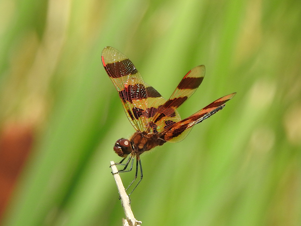 I didn’t see the spreadwings on my next visit on July 13th, a short casual visit after spending a couple of hours at Sheila McKee Memorial Park. I did, however, find a Halloween Pennant there (only my second one ever at this trail) and spotted a Northern Water Snake in the water. The Halloween Pennant was the highlight of that visit, its orange-banded wings fluttering in the slight breeze as it delicately balanced on the tip of a reed.