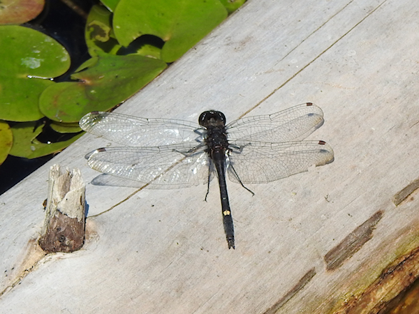 There were no Chalk-fronted Corporals to be seen. My personal late date is July 18th at Roger’s Pond in 2019, so I was hoping one or two might still be around. The Halloween Pennant was also gone, but one Four-spotted Skimmer, one Twelve-spotted Skimmer, and one Blue Dasher remained. Similarly I noted one Dot-tailed Whiteface perching on a log in the water.
