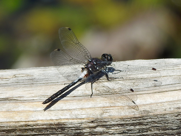 I saw only two Chalk-fronted Corporals at the boardwalk, as well as a single male Eastern Pondhawk, several Dot-tailed Whitefaces and one Belted Whiteface. This male Belted Whiteface was easy to identify based on the red spot beneath the white pruinosity at the base of the abdomen; this spot is absent on the similar-looking Frosted Whitefaces, which have no red colouration whatsoever.