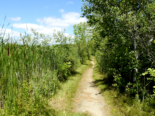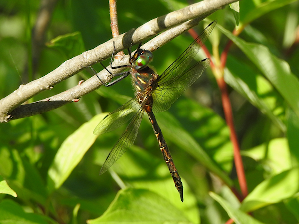 At the back of the third loop, however, I spotted a multitude of dragonflies flying high overhead and up and down the trail at about waist-height. The trail cuts through a marsh here, running straight as a railroad track which makes it easy to look for dragonflies patrolling the narrow space between the vegetation and thin line of trees separating the cattail marsh from the path. I was thrilled to see so many emeralds here and recognized a Prince Baskettail soaring overhead with a few other unidentifiable dragonflies.