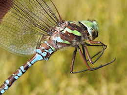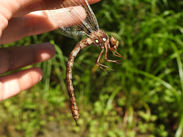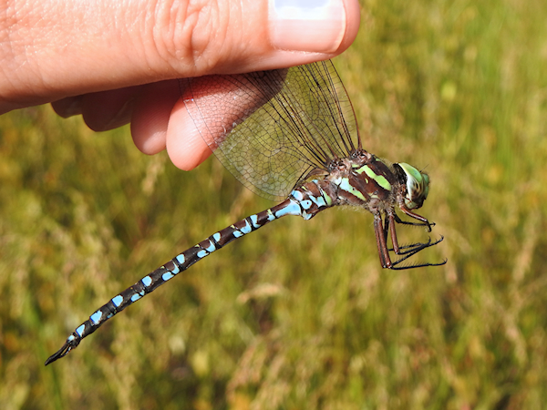 Once again we failed to find any Zebra Clubtails, so after about only 15 minutes we left. We stopped along the grassy track that passes the Eco-Centre once again to try and catch the darners flying along the path, and this time we caught one – a female Shadow Darner with lovely amber wings and two missing cerci.