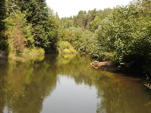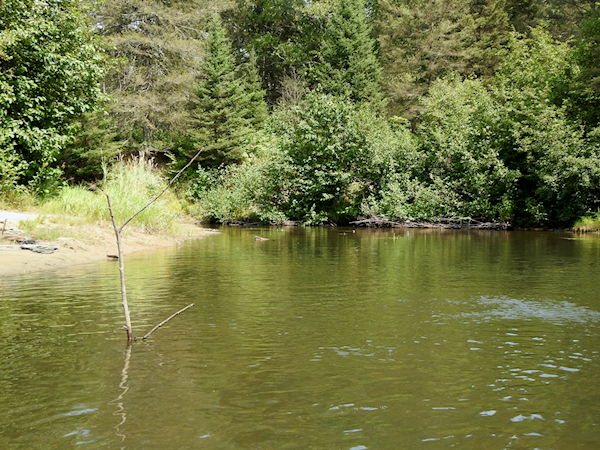 We waded into the water and waited for one of the clubtails to fly close enough to net. There is a steep drop off not too far from the shore, so we were unable to get out into the middle of the river where they were flying. We tried waiting in different positions between the rapids and the downed pine tree and although we spent about three hours there, Chris only swung his net once and I only swung mine once. Both of us missed.