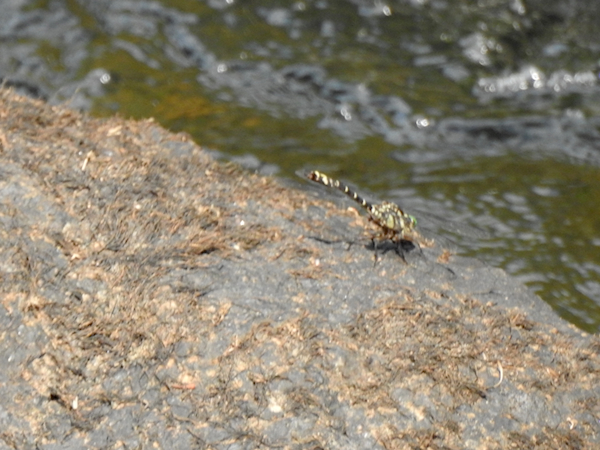 We drove to the spot on the river I named Dragonbend. This time we spotted at least three clubtails zooming over the water below the rapids as well as at least four Fawn Darners patrolling the stream banks and two mosaic darners flying much higher. The sticks we had placed in the water as perches were still there, but no one was using them.