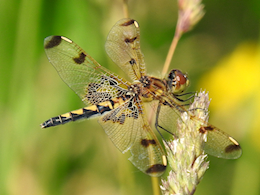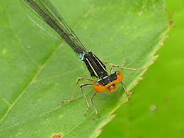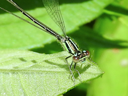 I often visit the former Richmond Lagoons (now called the Richmond Conservation Area) around late June or early July to look for spreadwings, as this is one of the best places to find five or six different species. It’s one of the few places I can find Lyre-tipped Spreadwings easily, and in 2023 I found another difficult-to-find species here, the Emerald Spreadwing. Both spreadwings are listed as “uncommon” in the Ottawa checklist, but the Lyre-tipped Spreadwing is also designated as “local,” having a special preference for shallow marshes and vegetated ponds completely in the open, particularly those that often dry up during prolonged droughts. While the Lyre-tipped Spreadwings typically disappear with the water, they are also quick to appear in temporary flooded areas such as farm ponds, gravel pits, and artificial ponds. While Emerald Spreadwings also inhabit densely vegetated, shallow wetlands, they can be common in shrubby or forested areas a distance away from their breeding ponds. Emerald Spreadwings are not usually successful in wetlands where predators such as fish or dragonflies are common, which may explain why they can be tough to find.