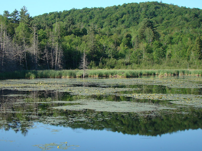 Still, it is a great place for wildlife viewing, as the park combines many different habitats: mountains, forests, streams, marshes, swamps, bogs, pastoral landscapes, and more than 50 lakes. Two ecosystems are particularly valuable due to the number of species at risk they shelter. The first ecosystem includes the Eardley Escarpment, Eardley Plateau, Meech Lake, Harrington Lake, Philippe Lakes, La Pêche Lake and Pink Lake Plateau; it is considered the richest and most fragile ecosystem in Gatineau Park. At 270 metres high and 30 kilometres long, the Eardley Escarpment divides the rock of the Canadian Shield from the fertile St. Lawrence Lowlands, and the microclimate of its southern face allows many unique and rare species to flourish – more than half of Gatineau Park’s 145 species at risk are found here. The second habitat is the Lac-des-Fées and Folly Bog area. Folly Bog is a sphagnum bog which hosts a significant number of bog species not easily found elsewhere in the region. The variety of wetland habitats within the park make it a great place to find a variety of odonata species here, including quite a few not found on the flat southern side of the Ottawa River.